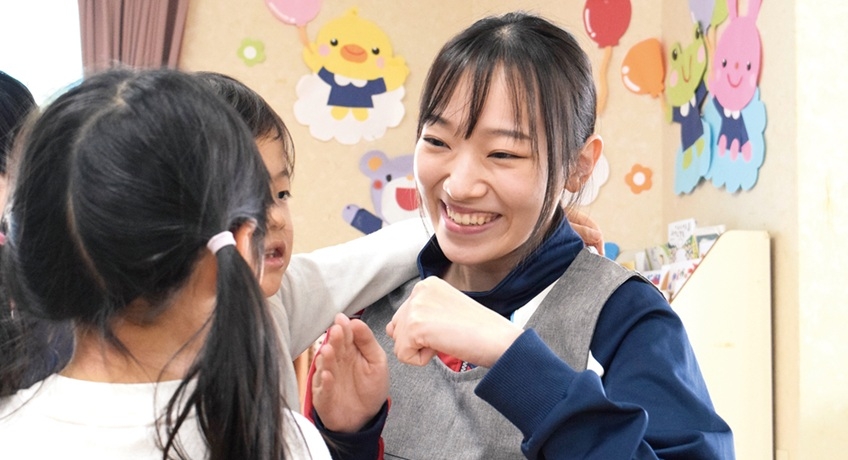 大学の敷地内に認定こども園があるため、日頃からこども達と触れ合う活動が多くあります。そのため、より近くでこどもと保育者が関わる様子を観察でき、成長に繋げられると思い本学科を選びました。