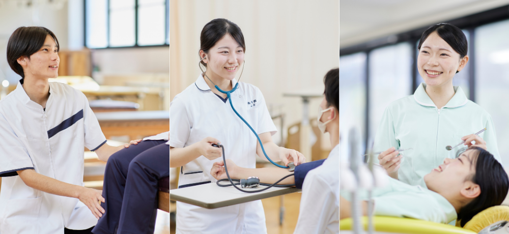 専門学校 鹿児島県鹿児島市田上8丁目21-3キャンパス内に複数の学科を有しており、学科を超えた学習や交流を通して、医療の現場で必要となるチーム医療について学ぶことが出来ます。